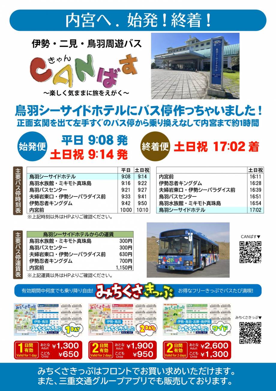 また伊勢二見鳥羽周遊バス「CANばす」も便利です!!